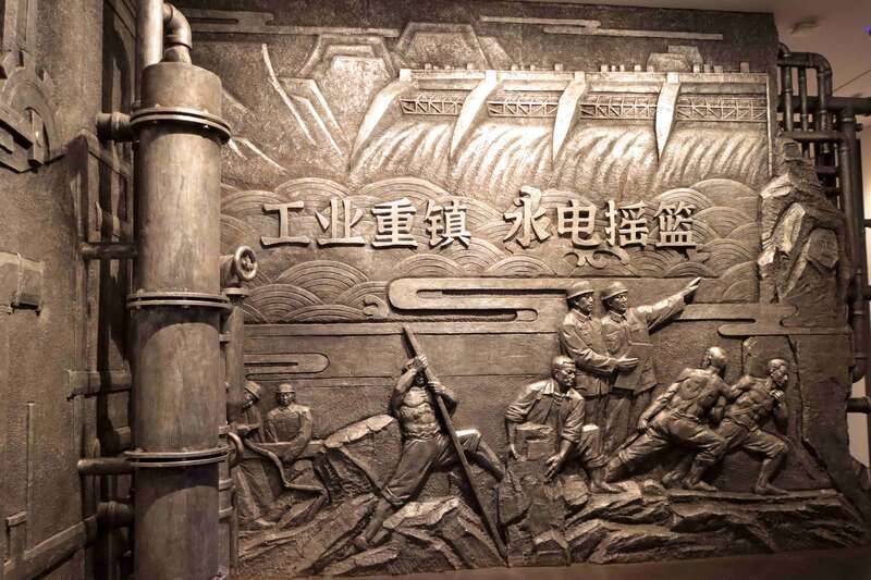 长寿博物馆“工业重镇 水电摇篮”浮雕图。 重庆移通学院 陈媛/摄